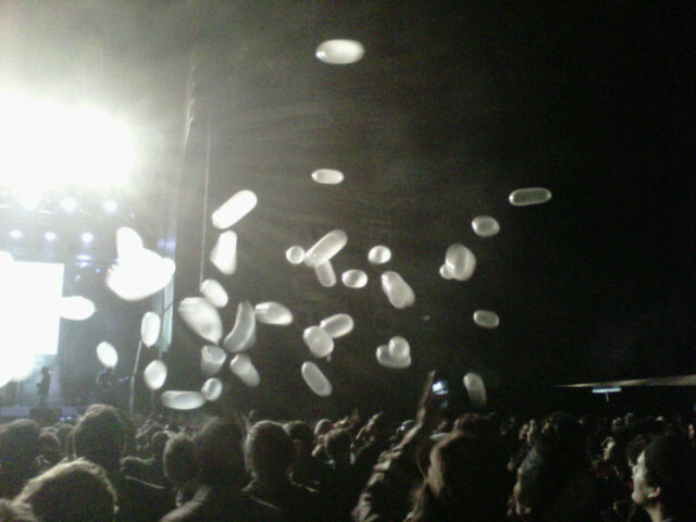 La muchachada inflando decenas d preservativos tirandolos al aire en la espera a la actuación de La Vela. #PuntaRock pic.twitter.com/YZXsdjZCG5